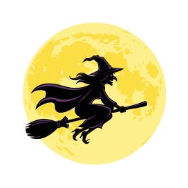 The witch flew away on her broomstick.