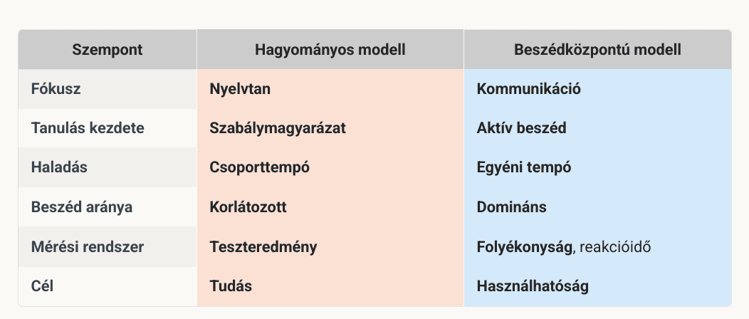 A hagyományos és a beszédközpontú nyelviskola nem egymás ellentétei, hanem különböző célokra optimalizált rendszerek.