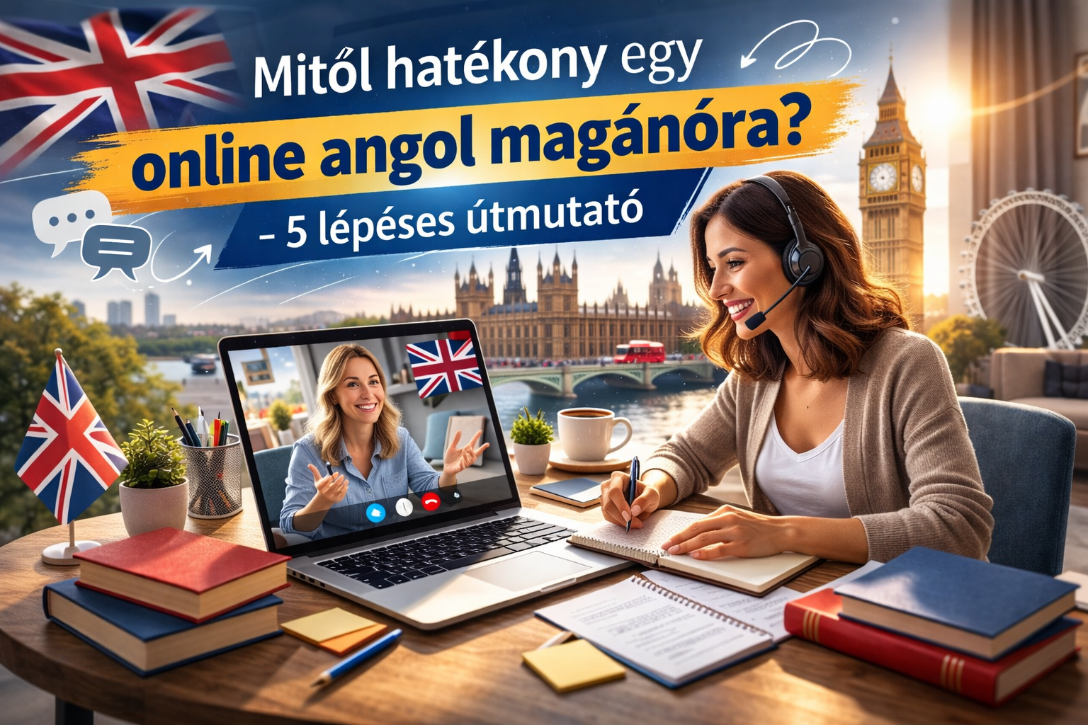 Egy online angol magánóra akkor hatékony, ha a beszédidő dominál (legalább 30 perc egy 45 perces órából), strukturált rendszerben halad, és azonnali, építő visszajelzést biztosít. A fejlődést nem az óraszám, hanem a tudatos beszédgyakorlás határozza meg.